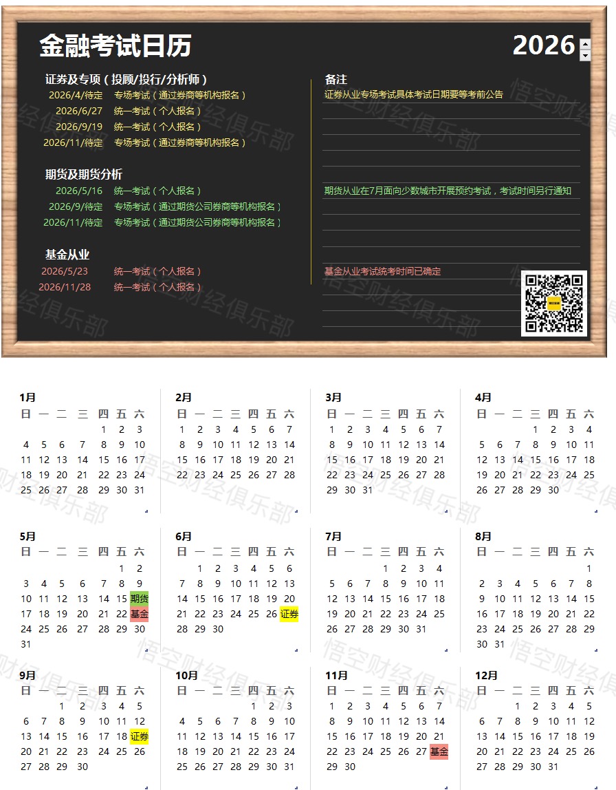 【2026】金融考试日历